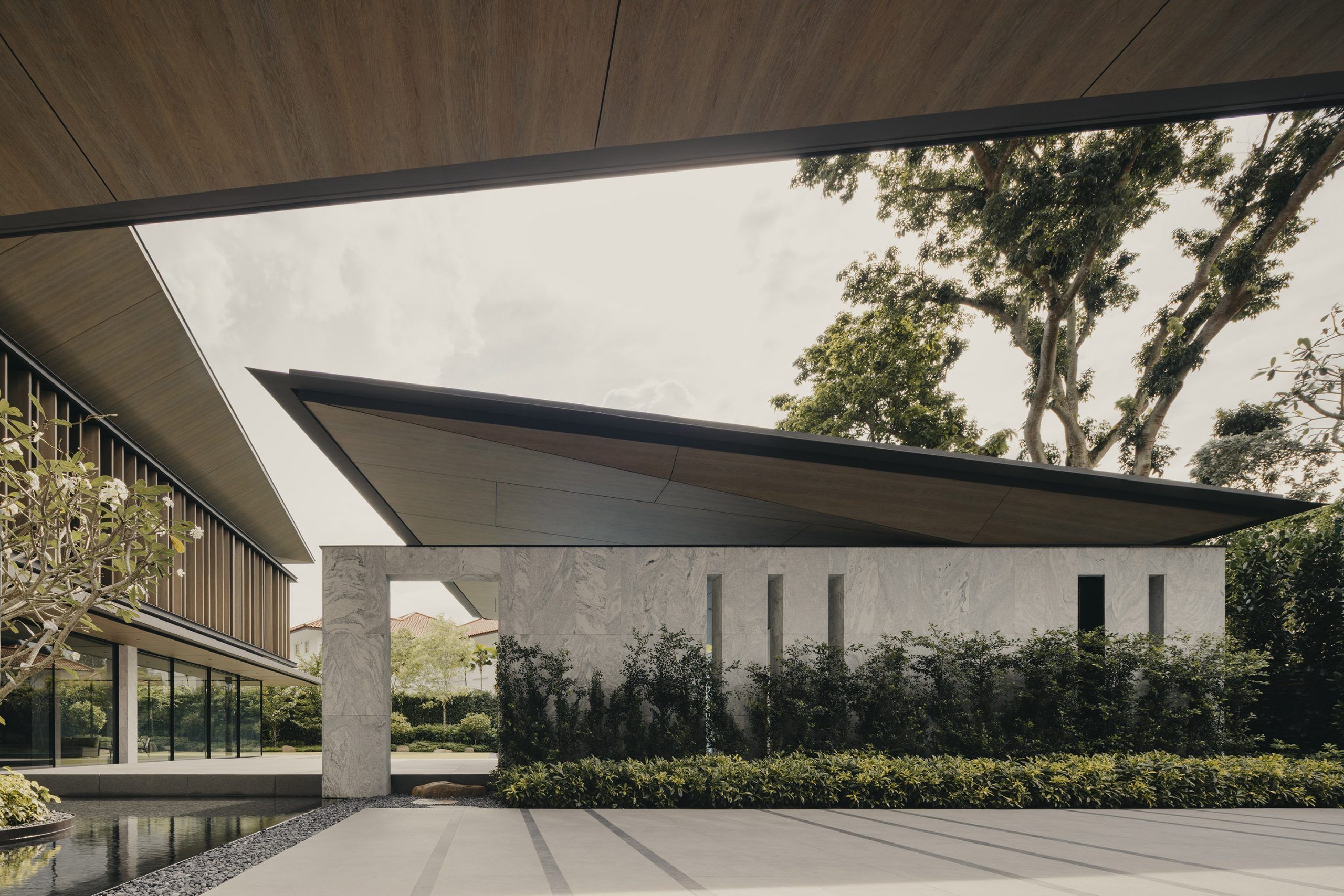A property with a long driveway and surrounded by 5 neighbours in close proximity. Client’s brief calls for a new bungalow design that provides privacy from the neighbours and with a new garden that honour the Plumerias that the Client loved and need to be relocated out of the property for the new house construction.