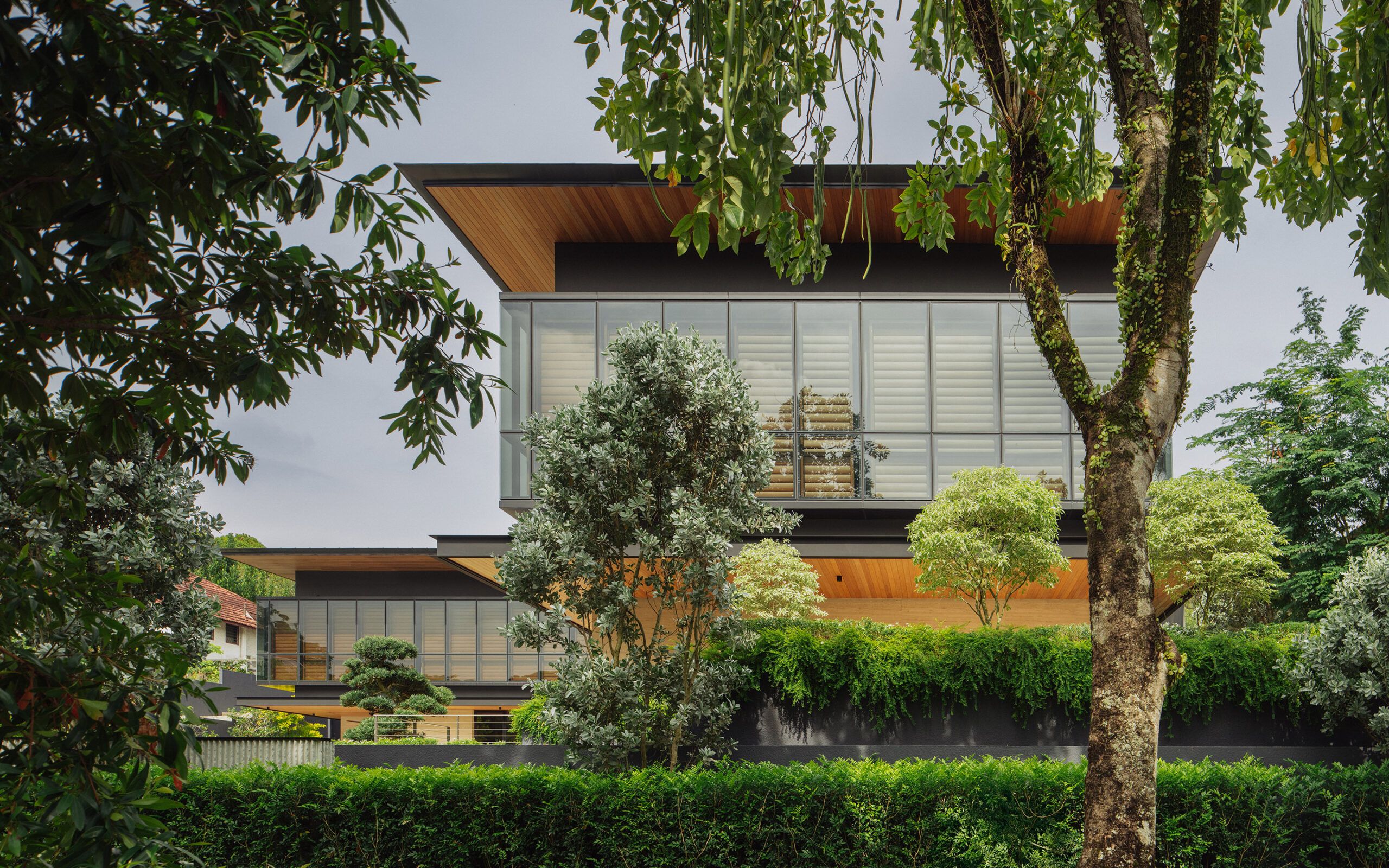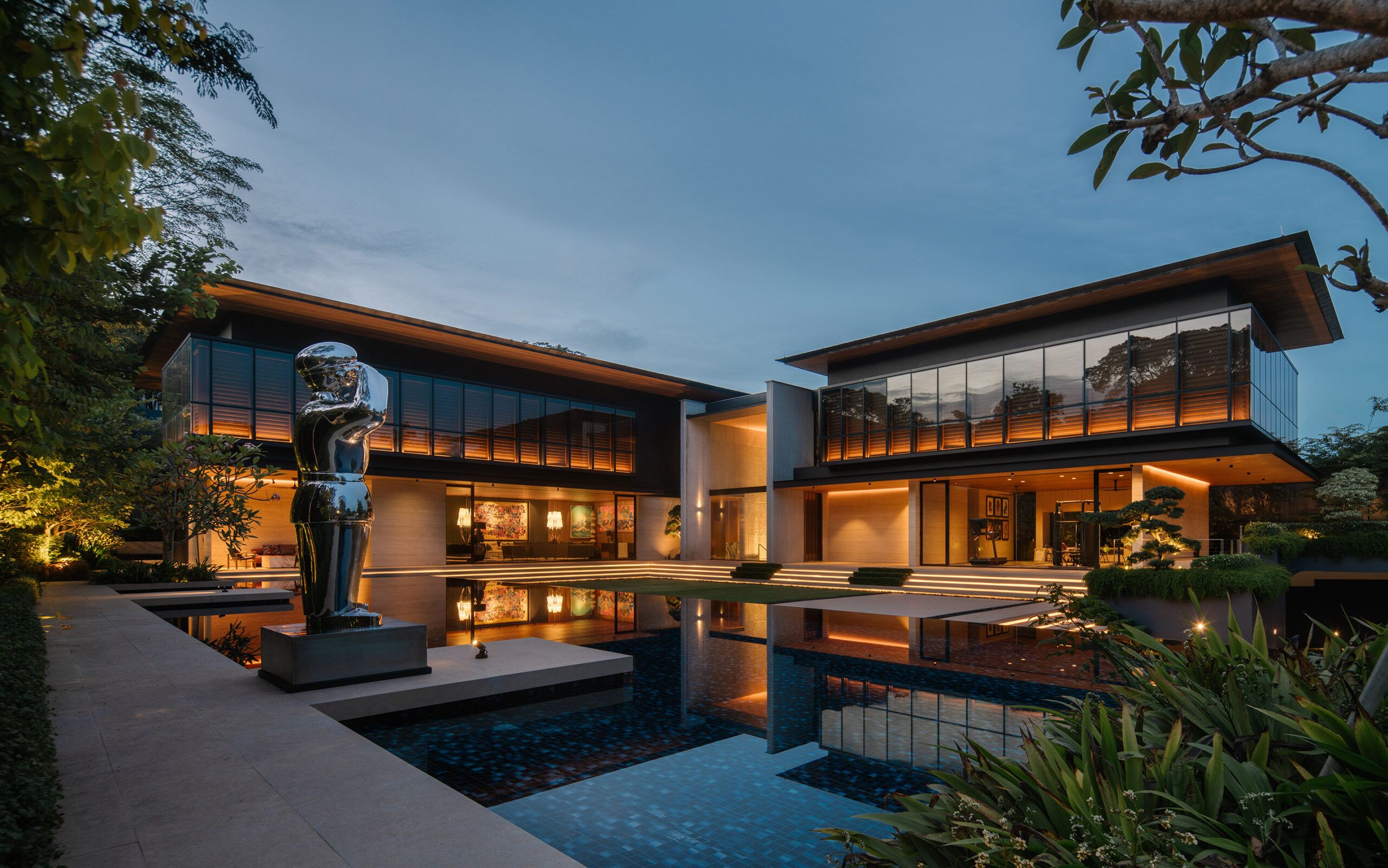 Casa ORO is the definition of a tropical luxury escape, where the terraced landscapes, rear water feature, and a warm palette of timber and stone come together to create a serene, resort-like atmosphere. The timber screens, expansive roof overhangs, and soft evening illumination give the home a tranquil yet striking presence when mirrored in the stillness of the courtyard pool.